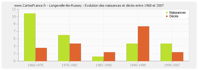 Longevelle-lès-Russey : évolution des naissances et décès de 1968 à 2007