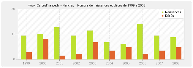 Nancray : évolution des naissances et décès de 1968 à 2007
