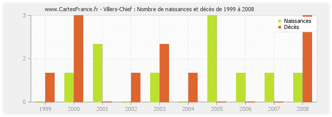 - Villers-Chief en 2008 : 1 naissances et 3 décès