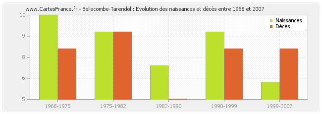 Bellecombe-Tarendol : évolution des naissances et décès de 1968 à 2007
