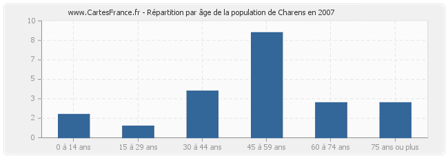- Population de Charens de 60 à 74 ans : 8 habitants
