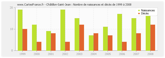 - Châtillon-Saint-Jean en 1999 : 19 naissances et 10 décès
