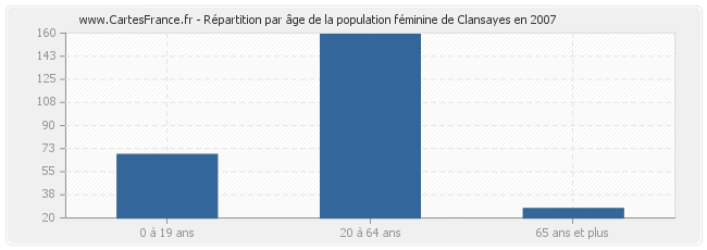 Répartition de la population féminine de Clansayes par âge en 2007 :