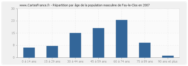Répartition de la population masculine de Fay-le-Clos par âge en 2007 :