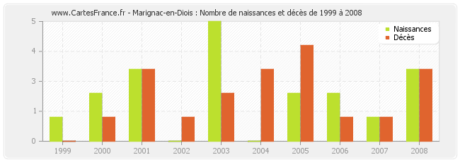 Marignac-en-Diois : naissances et décès de 1999 à 2008