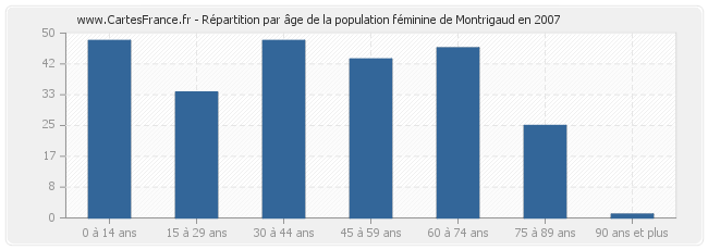 Répartition de la population féminine de Montrigaud par âge en 2007 :