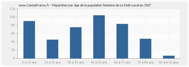 Répartition de la population féminine de Le Poët-Laval par âge en 2007 :