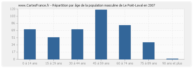Répartition de la population masculine de Le Poët-Laval par âge en 2007 :