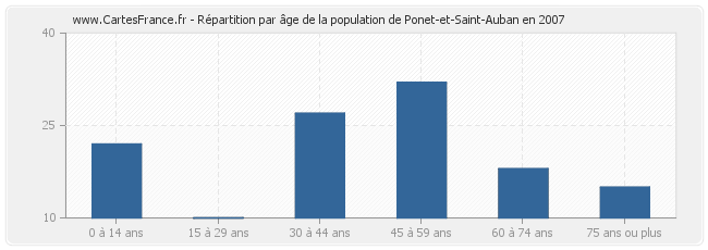 - Population de Ponet-et-Saint-Auban de 45 à 59 ans : 32 habitants
