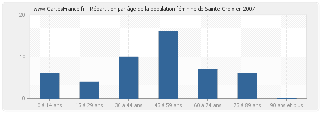 Répartition de la population féminine de Sainte-Croix par âge en 2007 :