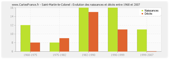 Saint-Martin-le-Colonel : évolution des naissances et décès de 1968 à 2007