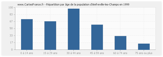 - Population d'Amfreville-les-Champs de 30 à 44 ans : 97 habitants