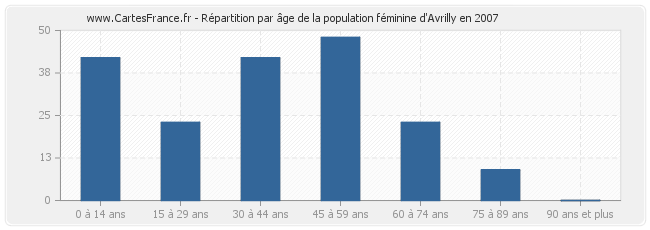 - Femmes de 45 à 59 ans habitant Avrilly : 48