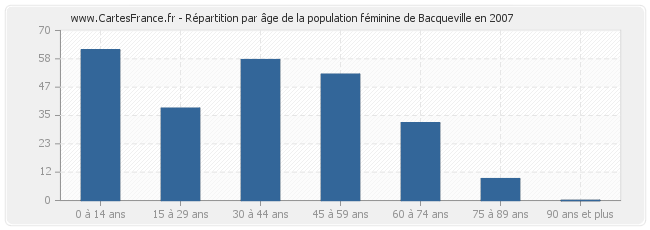 - Femmes de 0 à 14 ans habitant Bacqueville : 62