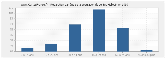 - Population de Le Bec-Hellouin de 45 à 59 ans : 107 habitants