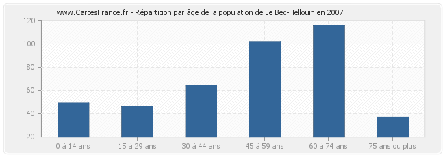 - Population de Le Bec-Hellouin de 60 à 74 ans : 116 habitants
