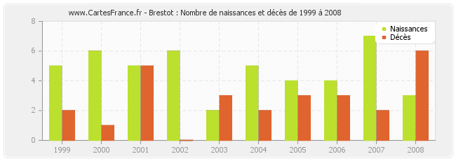 Brestot : évolution des naissances et décès de 1968 à 2007