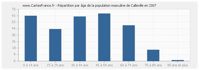 Répartition de la population masculine de Calleville par âge en 2007 :