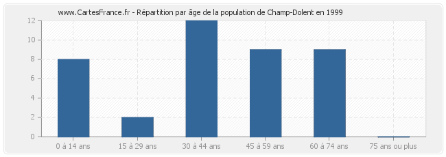 Répartition de la population de Champ-Dolent par âge en 1999 :