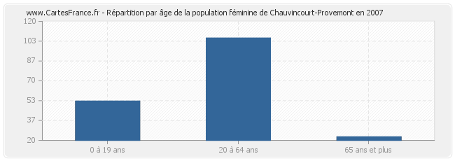 Répartition de la population féminine de Chauvincourt-Provemont par âge en 2007 :