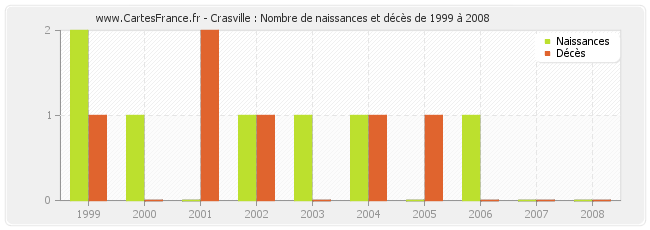 Crasville : naissances et décès de 1999 à 2008