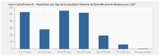 Répartition de la population féminine d'Épreville-près-le-Neubourg par âge en 2007 :
