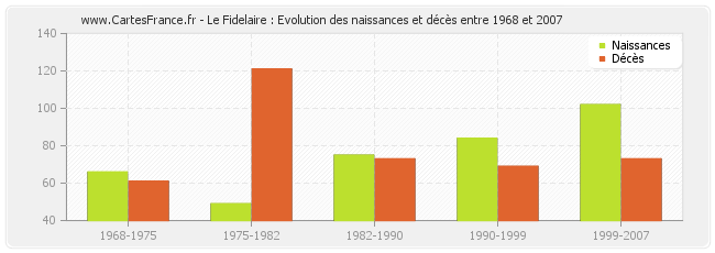 Le Fidelaire : évolution des naissances et décès de 1968 à 2007