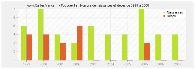 - Fouqueville en 1999 : 5 naissances et 4 décès