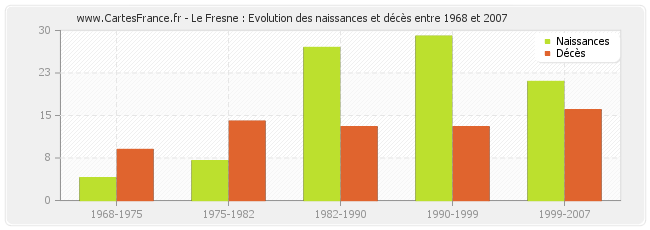 Le Fresne : évolution des naissances et décès de 1968 à 2007