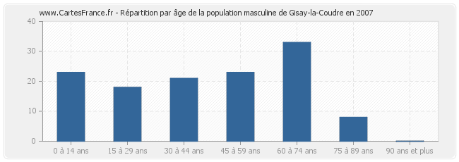 Répartition de la population masculine de Gisay-la-Coudre par âge en 2007 :