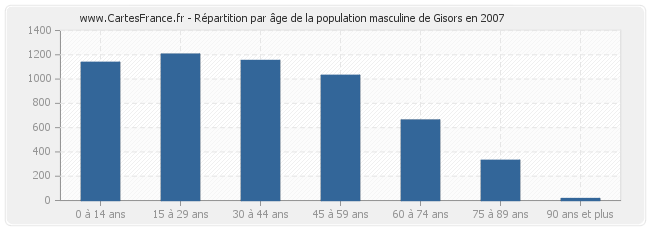 Répartition de la population masculine de Gisors par âge en 2007 :
