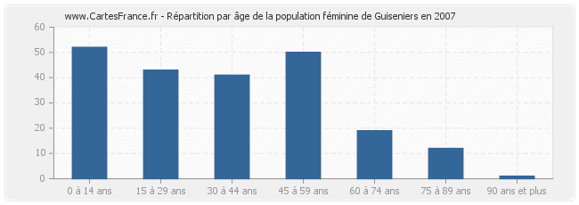 Répartition de la population féminine de Guiseniers par âge en 2007 :