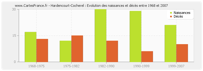 Hardencourt-Cocherel : évolution des naissances et décès de 1968 à 2007