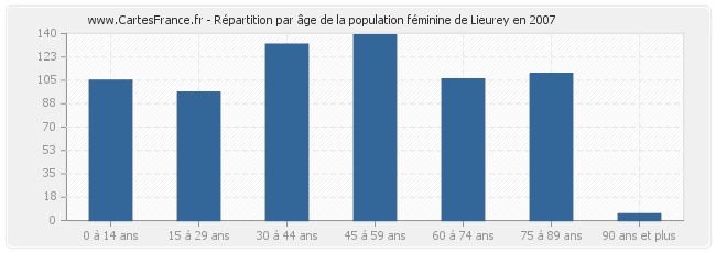 Répartition de la population féminine de Lieurey par âge en 2007 :