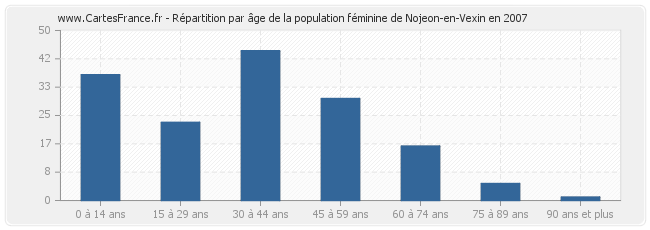 Répartition de la population féminine de Nojeon-en-Vexin par âge en 2007 :