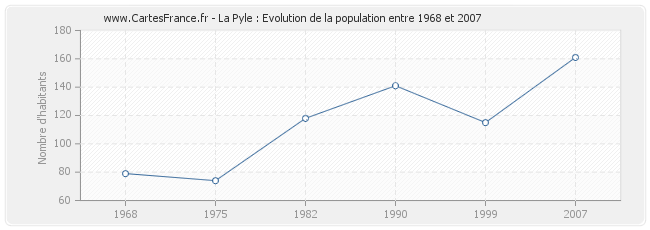 La population de La Pyle était de 161 habitants en 2007, 115 habitants en 1999, 141 habitants en 1990, 118 habitants en 1982, 74 habitants en 1975 et 79 habitants en 1968.