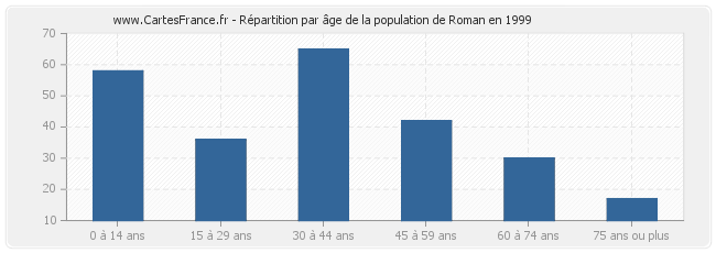 - Population de Roman de 30 à 44 ans : 65 habitants