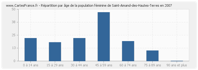 Population féminine de Saint-Amand-des-Hautes-Terres en 2007
