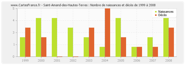 Saint-Amand-des-Hautes-Terres : naissances et décès de 1999 à 2008