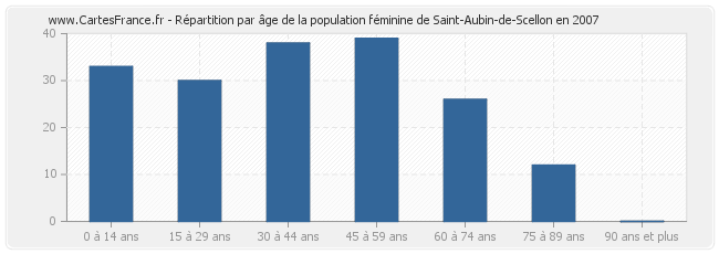 Répartition de la population féminine de Saint-Aubin-de-Scellon par âge en 2007 :