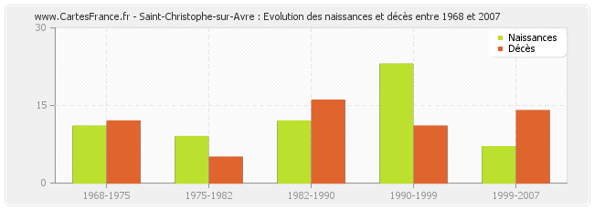 Saint-Christophe-sur-Avre : évolution des naissances et décès de 1968 à 2007