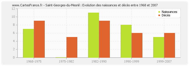 Saint-Georges-du-Mesnil : évolution des naissances et décès de 1968 à 2007