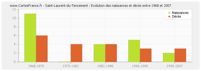 Saint-Laurent-du-Tencement : évolution des naissances et décès de 1968 à 2007