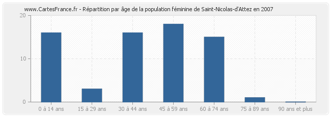 Répartition de la population féminine de Saint-Nicolas-d'Attez par âge en 2007 :