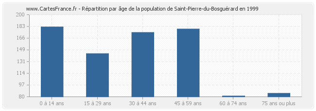 Répartition de la population de Saint-Pierre-du-Bosguérard par âge en 1999 :