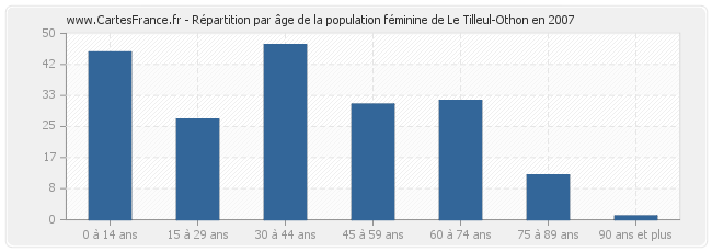 - Femmes de 0 à 14 ans habitant Le Tilleul-Othon : 45