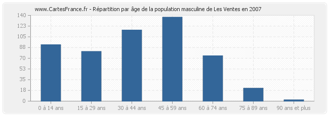 Répartition de la population masculine de Les Ventes par âge en 2007 :