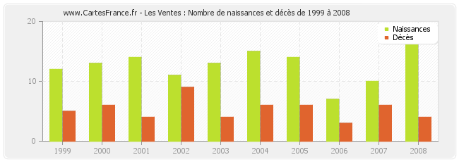 Les Ventes : naissances et décès de 1999 à 2008