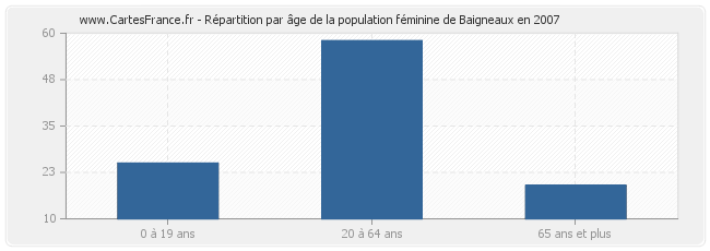 Répartition de la population féminine de Baigneaux par âge en 2007 :