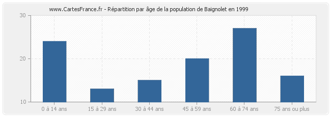 - Population de Baignolet de 60 à 74 ans : 27 habitants